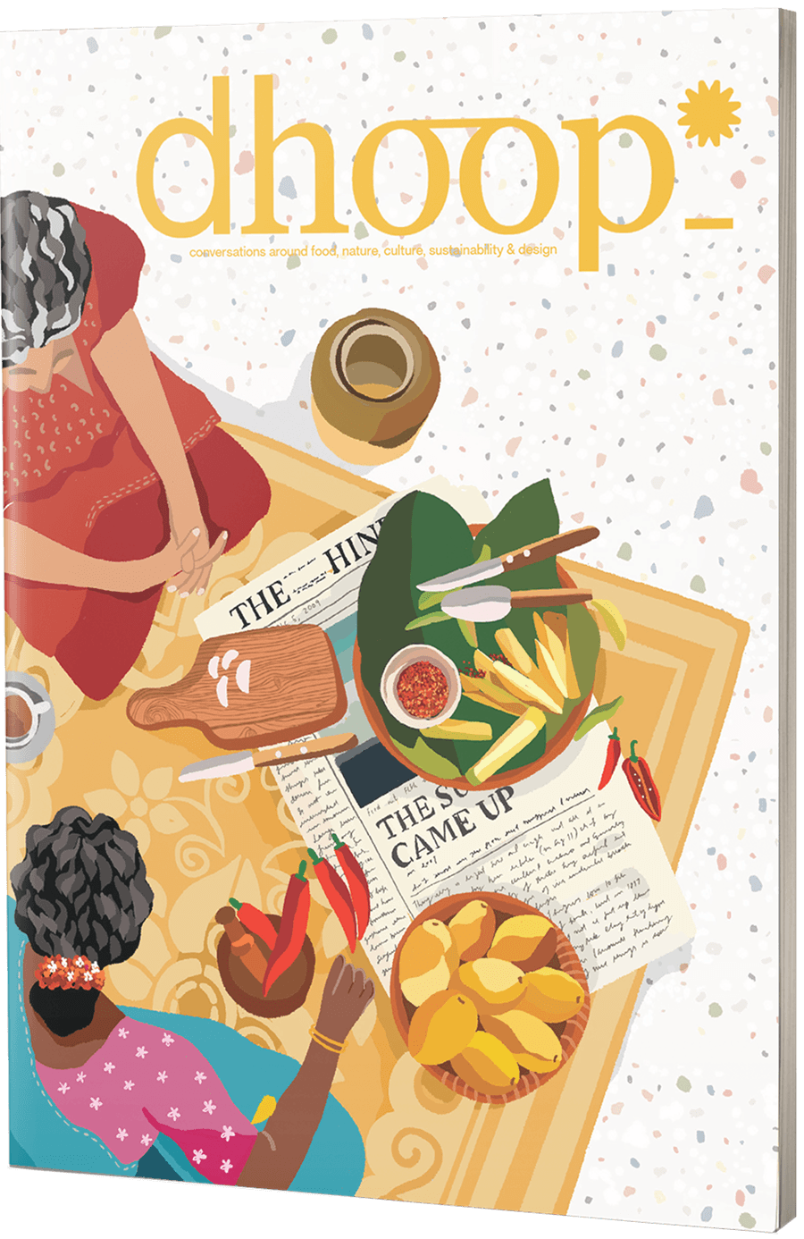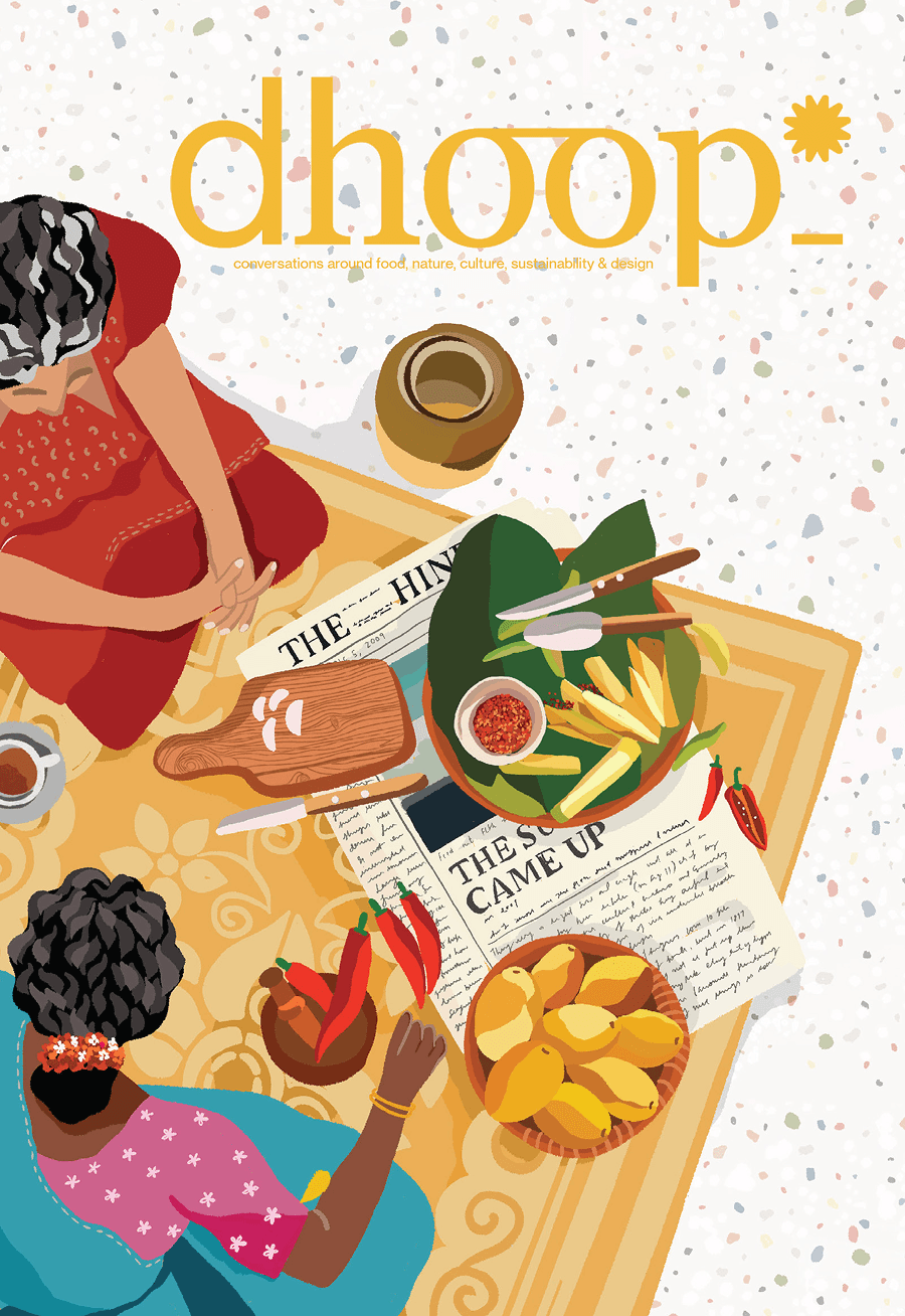 dhoop uses food as a lens. Through this lens, we interrogate culture, sustainability, design, and the systems that sustain life. We started as a magazine focused on stories of food and its intersections.