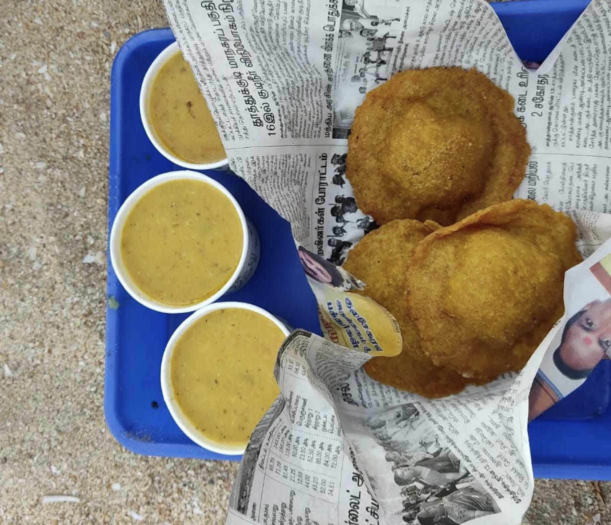That morning, the air for the next minute was filled with the voice of the vendor woman’s labour until she walked past our house to a distance – faintly receding. Fried food sellers, mostly women, come with their aluminium/plastic creel or tub with neatly cut newspaper bits to wrap the snacks you get. They stop house for house to ask if the family wants to take some. Many households wait with their tea, always made with ginger, cardamom, and sometimes Kaava podi (includes pepper, Indian sarsaparilla, dried ginger, liquorice, and pepper) for the sound of the fried food seller. For many Kayalites, drinking tea without a bite of Vaada or Vade is very undoable. The sound of the vendor is precious in the mornings where you wait to start your day with a bite of this and a sip of that.